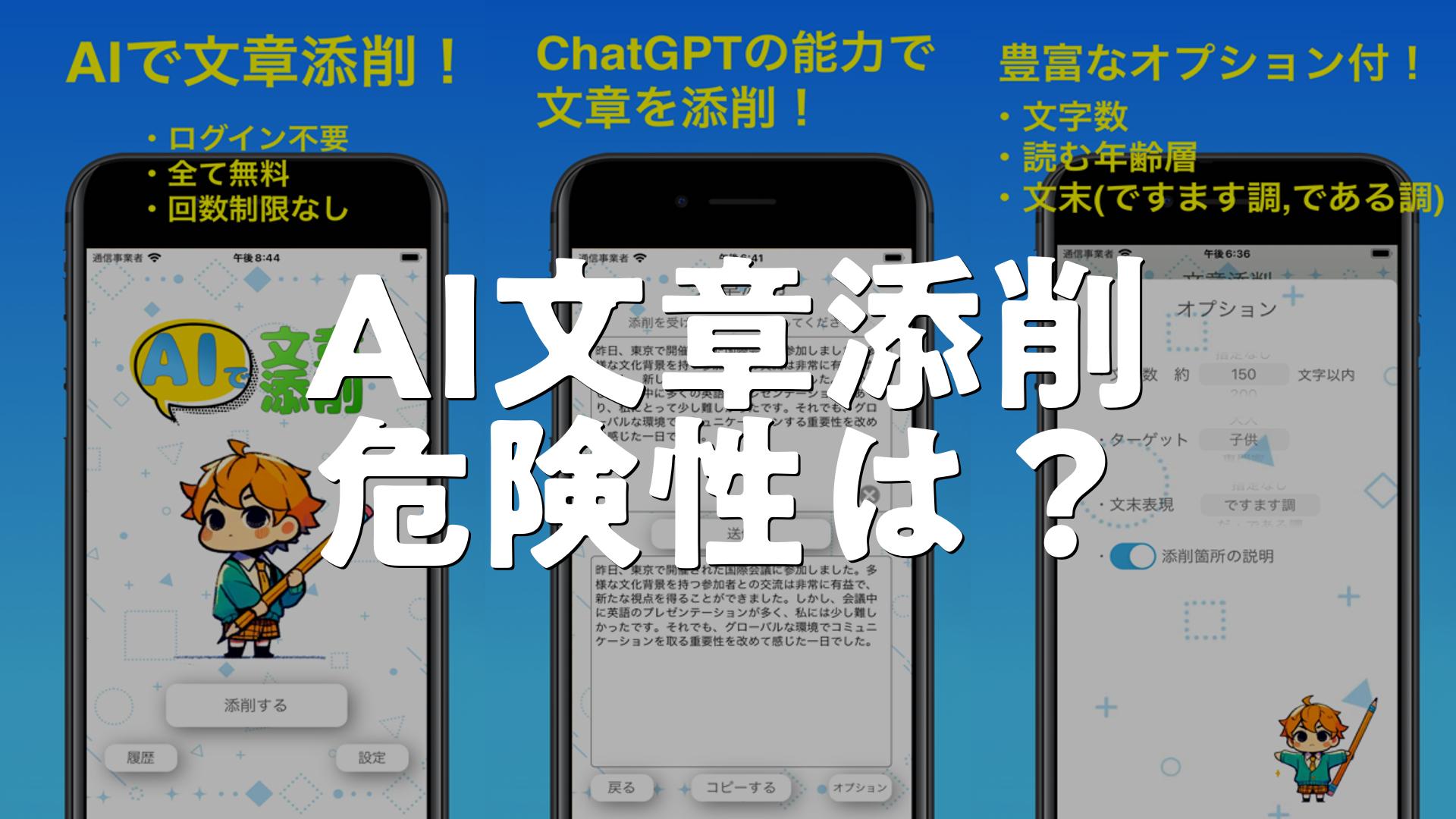 危険性は入力内容の取り扱いに注意すれば低く、運用上の制限を理解して使えば効率的に文章の質を高められます。