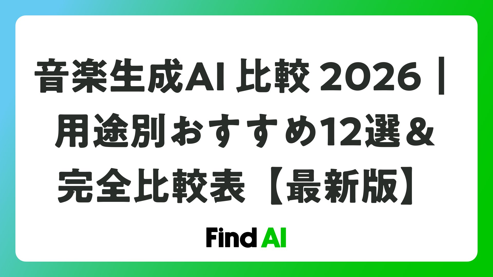音楽生成AI 比較 2026|用途別おすすめ12選&完全比較表【最新版】