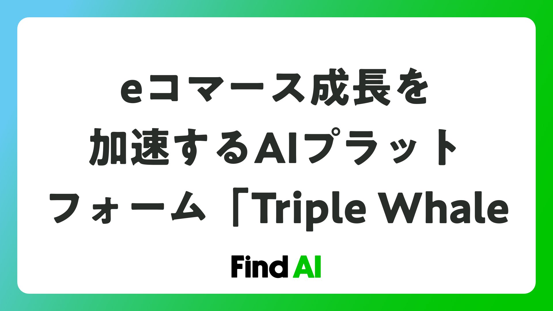 eコマース成長を加速するAIプラットフォーム「Triple Whaleをまとめました