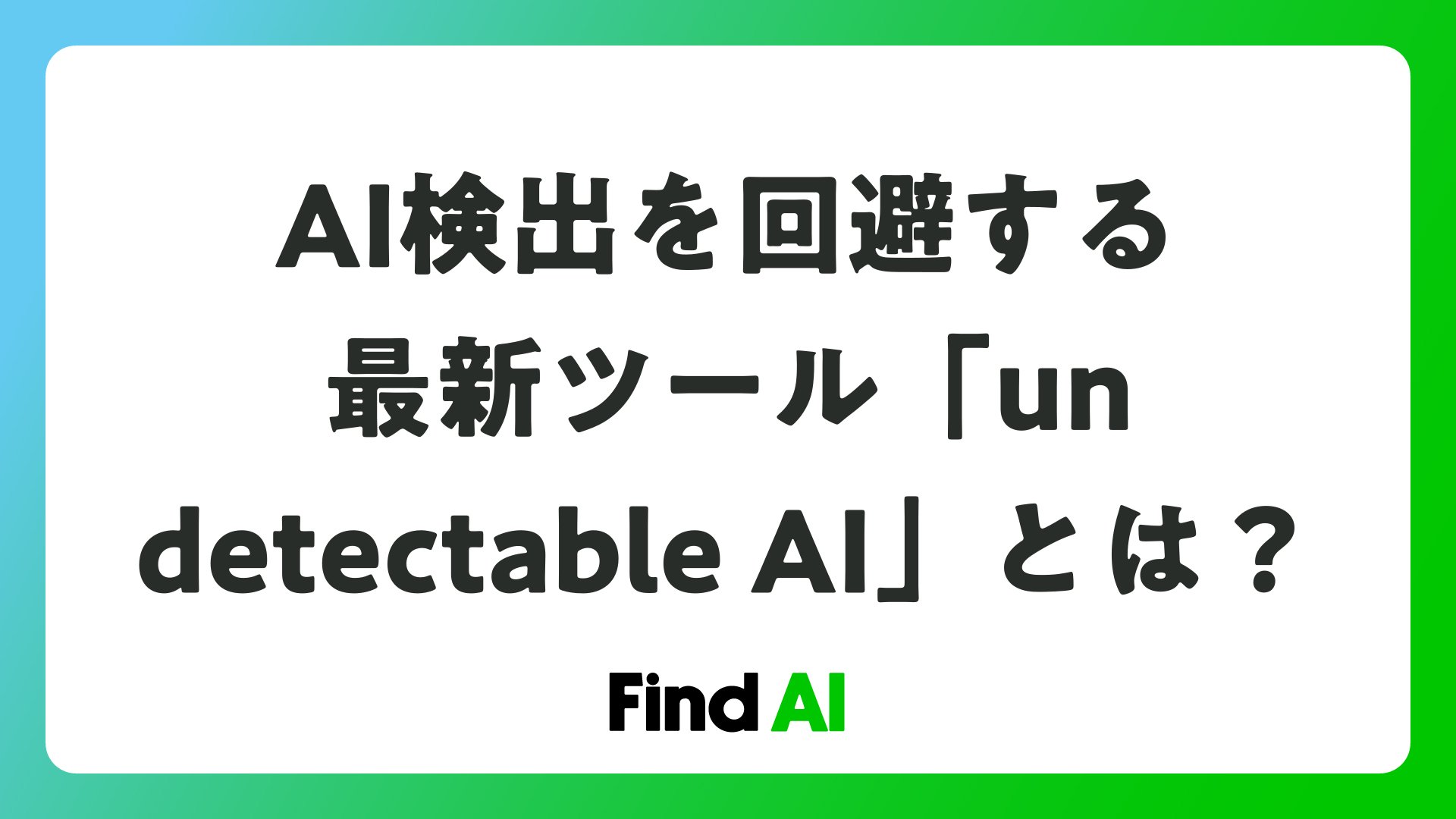 AI技術の進化に伴い、コンテンツ作成の効率が飛躍的に向上していますが、AI検出器の存在が新たな課題を生んでいます。そこで注目を集めているのがundetectable AIです。このツールは、AIが生成したテキストを自然で人間らしい表現に変換し、検出を回避しながら高品質なコンテンツを実現します。AI関連ニュース・ツール紹介メディアとして、今回はundetectable AIの機能、活用法、未来像を詳しく解説します。